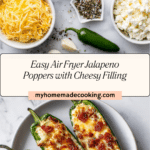 Crispy, cheesy jalapeno poppers made easily in the air fryer. A perfect spicy appetizer with a creamy filling and crunchy exterior, perfect for game days or casual gatherings.