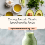A creamy and refreshing avocado cilantro lime smoothie that combines ripe avocado with fresh cilantro and zesty lime juice. This vibrant smoothie is naturally sweetened with honey or maple syrup and blended with milk or coconut milk for a smooth, nourishing drink packed with healthy fats.