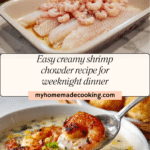 A creamy and hearty shrimp chowder packed with tender shrimp, potatoes, and vegetables, perfect for a comforting and warming meal any day of the year.