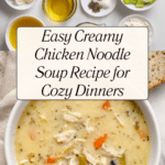 This Creamy Chicken Noodle Soup Recipe is pure comfort in a bowl and perfect for anytime you want a meal that feels like a warm embrace. It’s easy enough to make any night of the week but special enough to impress family and friends. Give it a try soon – you might just find your new go-to soup that brings a little extra happiness to your table.