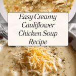A light and creamy cauliflower chicken soup that combines tender shredded chicken with nutrient-rich cauliflower and simple herbs. This low-carb, comforting soup is perfect for a wholesome meal any day of the week.