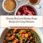 Gathering the right ingredients is the first step, and in this Hearty Beef and Barley Soup Recipe, each item plays a crucial role. The beef provides robust protein and flavor, the barley adds chewy texture and heartiness, and the fresh vegetables contribute vibrant color and subtle sweetness, making this soup a perfectly balanced meal.