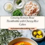 A creamy and mildly spicy Korean dish that combines chewy tteokbokki rice cakes with a rich, flavorful rose sauce made from a blend of gochujang, cream, and savory ingredients, perfect for a comforting main course.