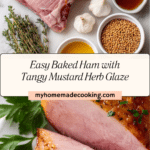 A flavorful baked ham coated in a tangy mustard and herb glaze, creating a perfect balance of savory and slightly sweet flavors. This dish is ideal for holidays or special dinners, featuring a tender, juicy ham with a caramelized crust from the baked glaze.