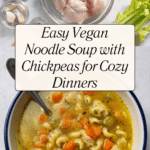 If you want to freeze the soup, it’s best to do so without the noodles. Noodles can become mushy after thawing and reheating. Store the broth, veggies, and chickpeas separately in a freezer-safe container for up to 3 months. When ready to eat, thaw and cook fresh noodles before serving.