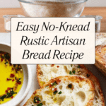 Serve this Rustic No-Knead Artisan Bread Recipe alongside comforting soups, rich stews, or fresh salads to balance hearty and light flavors. It’s also fantastic with a cheese board, where its crusty texture stands up perfectly to creamy cheeses and tangy spreads.