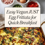 A simple and easy plant-based frittata made with JUST Egg, packed with fresh veggies and dairy-free cheese. This vegan and gluten-free breakfast is quick to prepare, fluffy, and satisfying, perfect for a nutritious start to your day.